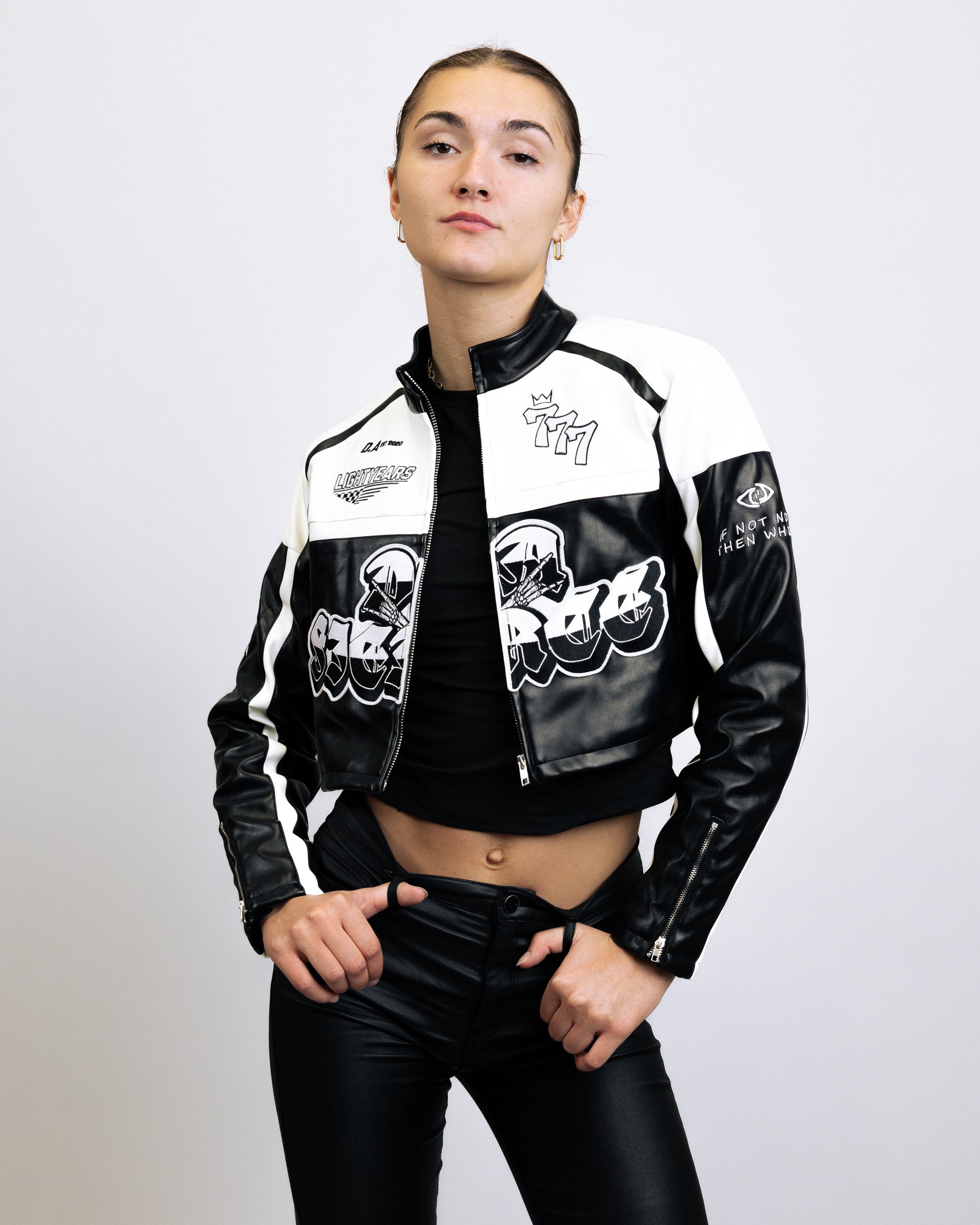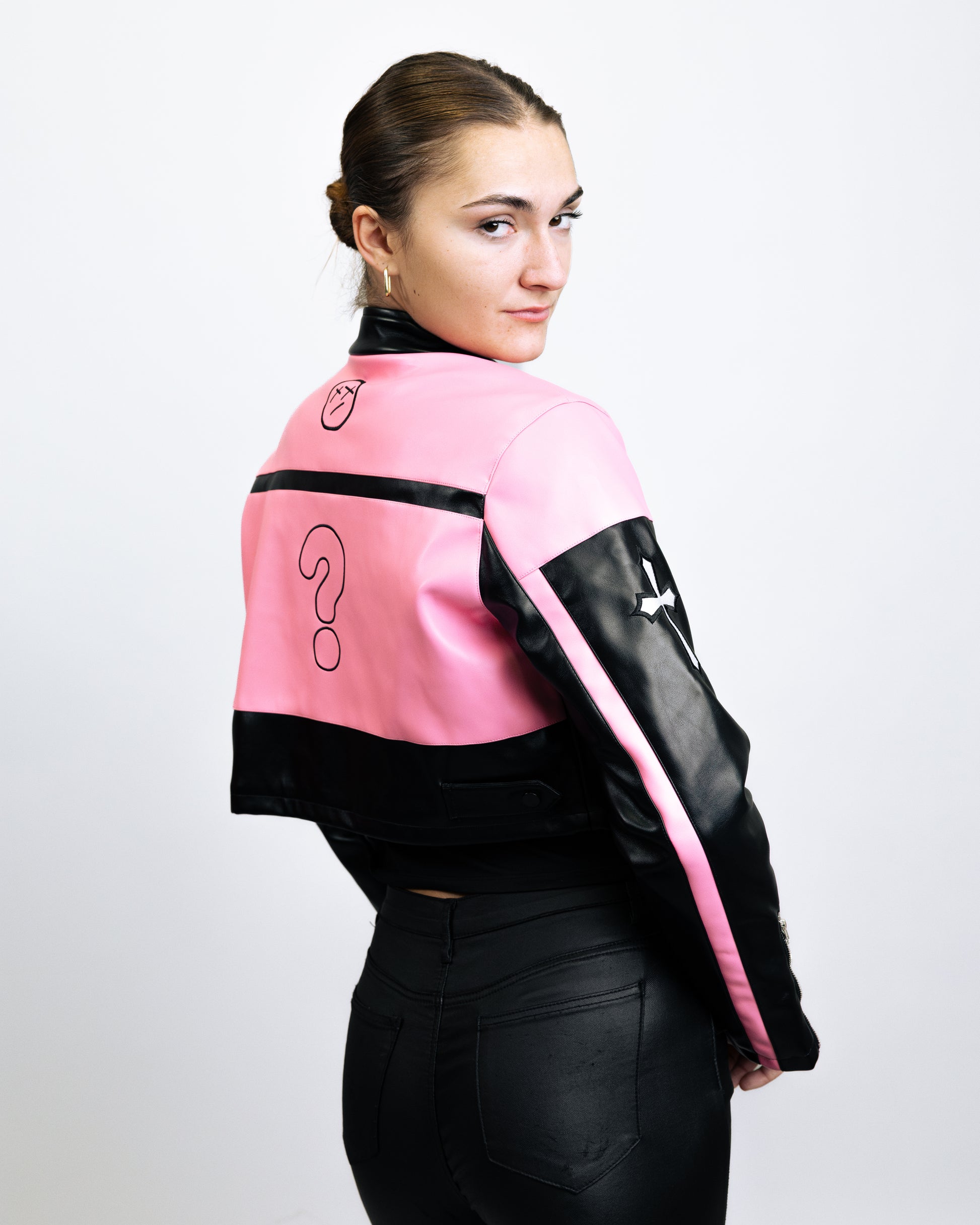 FEMALE FLORIST BUBBLEGUM JACKET IS MADE WITH 100% LEATHER. WE POURED OUR HEART INTO THIS PIECE!!